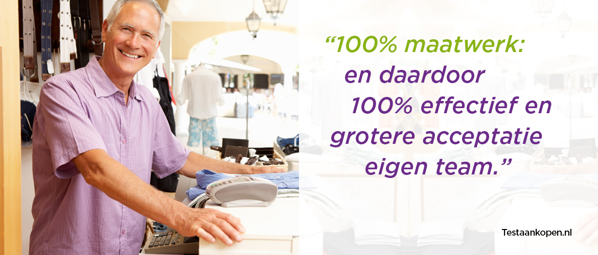 Tijdens ons project “klaar voor de toekomst” heeft Ton van Geene (van Ton van Geene Training & Advies) naast een intensief traject van persoonlijke gesprekken met alle medewerkers en meerdere groeps bewustwording- en brainstormsessies, testaankopen ingezet om te controleren of de gemaakte afspraken en het gewenste gedrag ook in de praktijk gebracht is.